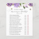 Guess Who Mummy or Daddy Baby Shower game card. Featuring purple lilac flowers and swirling bees. Matching items available in the Adore Paper Co. shop in Zazzle.