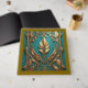 Beautiful gold leaves set against a teal background cover this elegant guest book.