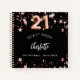 A stylish black background with rose gold stars. Add your name, and text. Age number is written with a balloon style font.