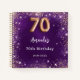 A guestbook for a feminine and glamourous 70th birthday party. A stylish purple background with faux purple and rose gold sparkles. The purple colour is uneven. Personalise and add your name and a date.