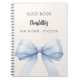 Baby shower guest book for a baby boy featuring an elegant blue bow design. This personalised guest book is a beautiful way to capture messages, advice, and well wishes from friends and family during the baby shower celebration.
