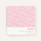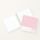 A soft pink background, decorated with a pattern of white nursery cribs. Personalise and add a name and a date. Can be used as a party guest book, for planning the party or as party favours.