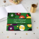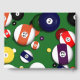 In the 19th century a poolroom was a horse race betting parlour. Pool tables were installed so the bettors could pass time between horse races. Billards, or pool, is the descendant of a game similar to croquet that was played in 15th-century Europe. Though we don't know for sure, it is strongly suspected that billiards came to America with Dutch and English settlers. By the 1700's, skilled cabinet makers were crafting beautiful tables, though the equipment was, otherwise, quite primitive. Fifteen-ball pool came on the scene in the late 1800's and grew in popularity through the 1940's. Billiards was revived in 1961 with the release of the movie THE HUSTLER. It enjoyed another surge in the mid 1980's with the release of the movie sequel, COLOR OF MONEY. Since that time, there has been an evolution of the environs in which we find pool tables -- they're in restaurants and night clubs and sports bars, allowing pool to find a modern audience and new generations of enthusiasts. This marvellous design is layers of billiard balls in varying sizes for greater depth. They are scattered all over a "green felt" backdrop for this wonderful guest book. Whether it's for a billiards-themed wedding or a tournament at your favourite pool hall, this delightful registry makes a marvellous guest record keep-sake.
