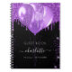 A stylish black background with purple faux glitter drips and dust. Decorated with purple balloons. Personalise and add a name, age and a date. The name is written with a modern hand lettered style script with swashes. To keep the swashes only delete the sample name, leave the spaces or emoji's in front and after the name.
