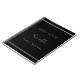A classic black background, a faux silver looking frame. Personalise and a name and age/date. White text.