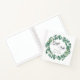 A white background color.  Add a name and a date. Decorated with a watercolored eucalyptus greenery wreath. The text: Guest Book is written with a modern hand lettered style script.