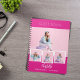 Create your own unique photo collage. Use four, 4 of your favourite photo. Personalise and a name and age/dates. A trendy hot pink background, white text.