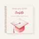 A beige, cream background colour. Decorated with a large pink cap. Personalise and add your name, year, school name.