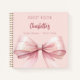 A blush pink background colour. Decorated with a large pink bow. Personalise and add the name and date.