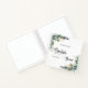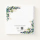 A white background colour. Decorated with eucalyptus greenery and golden foliage. Add a name and a date.