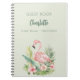 A trendy sage green background decorated with a pink flamingo and tropical flowers and foliage. Personalise and add a name and text/date.
