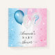 A guest book for a gender reveal party/baby shower. A blue and pink gradient background with blue and pink faux glitter dust, balloons in blue, pink and white. Personalise and add the name of the mum-to-be. The name is written with a modern hand lettered style script.