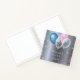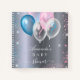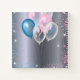 A guest book for a gender reveal party/baby shower. A faux silver background with blue and pink faux glitter dust, balloons in blue, pink and white. Personalise and add the name of the mum-to-be. The name is written with a modern hand lettered style script.