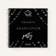 A stylish black background with faux silver stars and a cap.  Personalise and add a name and year.  Can be used as guest book or planning the party.