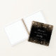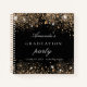 A stylish black background with dark faux gold glitter dust. Personalise and add a name and the date. Can be used as guest book or planning the party.