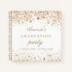 A stylish white background with dark faux gold glitter dust. Personalize and add a name and the date. Can be used as guest book or planning the party.