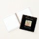 A guest book for a memorial service or funeral. A black background colour. Decorated with golden hearts. Personalise and add a photo, name and dates.