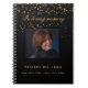 A guest book for a memorial service or funeral. A classic black background, and faux golden confetti. Personalise and add a photo, name and dates.