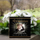 A guest book for a memorial service or funeral. A classic black background, a faux gold frame on the front. Sun, star rays behind the photo. Personalise and add a photo, name and dates.