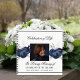 A guest book for a memorial service or funeral. White background, with blue florals. Personalise and add a photo, name and dates.