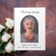 A guest book for a memorial service or funeral. A classic white background, black text Personalise and add a photo inside the arch frame, name and dates.