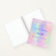 A guest book for a 18th (or any age) birthday party. A trendy holographic coloured background in pink, purple, mint green. Decorated with confetti in pink. Personalise and add a name, the name is written with a girly modern hand lettered style script