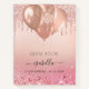 A stylish rose gold and blush pink background with drips and balloons. Personalise and add a name and a date. Can be used as a party guest book, for planning the party or as party favours.