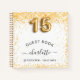 A guestbook for a feminine and glamourous Quinceañera, 15th birthday party. A stylish white background with dark faux gold glitter, sparkles. Add your name, age/text. Number 15 is written with a balloon style font.