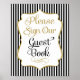 An elegant black and gold guest book bar sign that says "Please Sign Our Guest Book". This classic table sign features black and white stripes and a gold glitter accent frame. The perfect party decoration for your wedding, baby shower, bridal shower or birthday party. More table signs and party decor can be found in my shop.