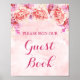 Guest Book Sign Pink Watercolor Flowers