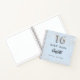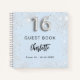 A stylish baby blue background with faux silver glitter, sparkles and number 16 written with a ballon style font. Add your name, date.