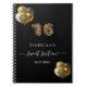 For an elegant Sweet 16, 16th birthday. A black background, decorated with balloons. Number 16 is written with a trendy balloon style font, leopard print. Personalise and add a name and a date. Sweet sixteen is written with a modern hand lettered style script with swashes.