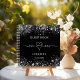 A stylish black background with faux silver glitter dust. Personalise and add your names and wedding date. Mr & mrs written with a heart. White letters.