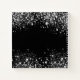 A stylish black background with faux silver glitter dust. Personalise and add your names and wedding date. White text.