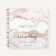 For a modern, elegant wedding. A stylish rose gold faux marble, agate background. Add your names and the wedding date. With the text: Guest book and our wedding. Our wedding is written with a trendy hand lettered style script with swashes.