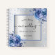 Faux silver looking background decorated with navy blue and light blue florals, flowers, and faux glitter, sparkles. Personalise and your names and the wedding date.