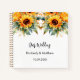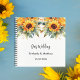 A white background decorated with watercolored sunflowers and greenery. Personalise and add a title, your names and the wedding date.