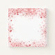 A stylish white background with red faux glitter dust. Personalise and add your names and wedding date.