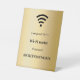 A Wi-Fi symbol. Add your wi-fi name and password for your customers/guests. A faux gold looking background.