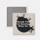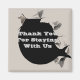 This promotional magnet features a torn and ripped paper design in light gray with "Thank You For Staying With Us" peeking out from underneath. The center is black with the text in pale gray. Text and black background color can easily be customized if you desire.