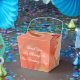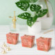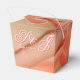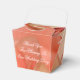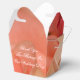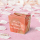 Wedding guest favour mini gift basket for your guests adorned with a peach rose. Coral and white text can be personalised to your special day details. All text is removable.