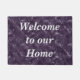 Welcome guests to your house, rental home, or summer retreat with this royal purple welcome mat. The background features a subtle pattern of rich purples along with "Welcome to our home" which can easily and quickly be customised to suit your needs.