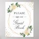 Geometric Frame Greenery Gold Glitters Floral - Sign Our Guestbook Poster.