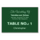 Guest's Name on Monochrome Emerald Green Wedding Table Number