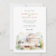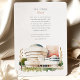 Celebrate your union with this distinctively modern and artistic wedding invitation, featuring a beautiful watercolor depiction of the iconic Solomon R. Guggenheim Museum in New York City. The artwork masterfully captures the museum's unique white, spiralling cylindrical architecture and its signature blue-grey dome, rendered in a soft, sophisticated watercolor style. The scene is complemented by stylised foliage, including slender branches with green leaves and subtle golden-yellow tips, and hints of green bushes at the base. A touch of a terracotta or soft pinkish-red adjacent building adds depth to the urban landscape, all set against an atmospheric, softly coloured sky. This invitation is perfect for couples seeking a contemporary, art-inspired, or iconic NYC landmark theme for their celebration. The front elegantly presents your wedding details, while the reverse side offers "The Finer Details" for guest information. The colour palette includes creamy off-whites, beiges, architectural greys, a touch of blue-grey, fresh greens, golden-yellow accents, and soft sky tones.