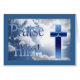 Beautiful blue sky of clouds with religious message and cross. Design and photography by Amber Sharp