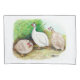 The three guinea fowl outside on a sunny day are a white, buff and buff dundotte.