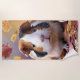 A beach towel that is sure to delight any guinea pig lover. In this heartwarming image, a guinea pig with a charming tricolor coat sits amidst a sea of fallen leaves. The soft beige and brown tones of the guinea pig's fur blend harmoniously with the surrounding autumn leaves, in a delicate range of fall colors from soft yellows to deep reds. The guinea pig's endearing expression and poised whiskers add a touch of life and character to the scene, encapsulating the peaceful and reflective mood of the harvest season. generativecontent
