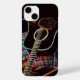 Guitar 1 - Photograph of a guitar player heavily altered in post production with lights and effects to create a bright and dynamic artwork.
