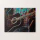 Guitar 1 - Photograph of a guitar player heavily altered in post production with lights and effects to create a bright and dynamic artwork.